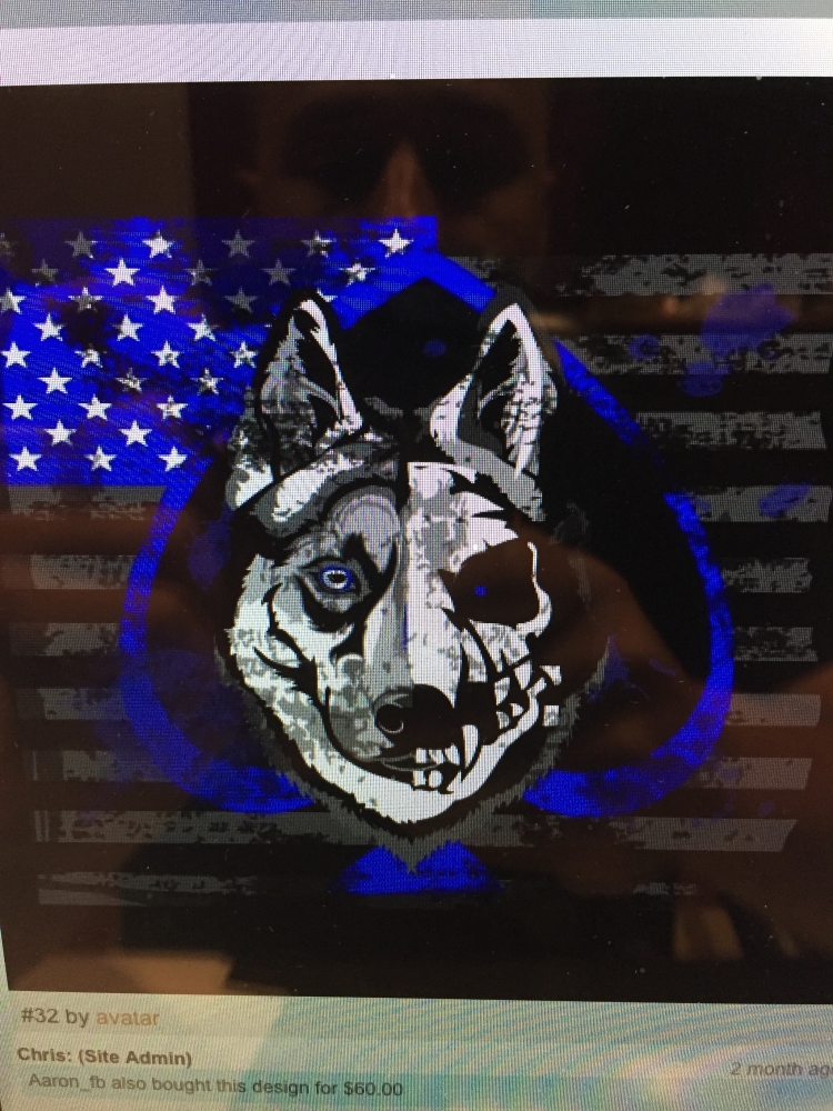 - we would like a shield with a wolfs/sheepdog face and also incorporate the "thin blue line", the image of the american flag with the blue line, we would like the wolf/sheep dogs face to be within the shield. attached are two samples and would like a mixture of both. we would like sheepdog shooting across the top of the logo and another example with sheepdog shooting across the top and incorporate the saying "hunting the wolf in the dark of the night"