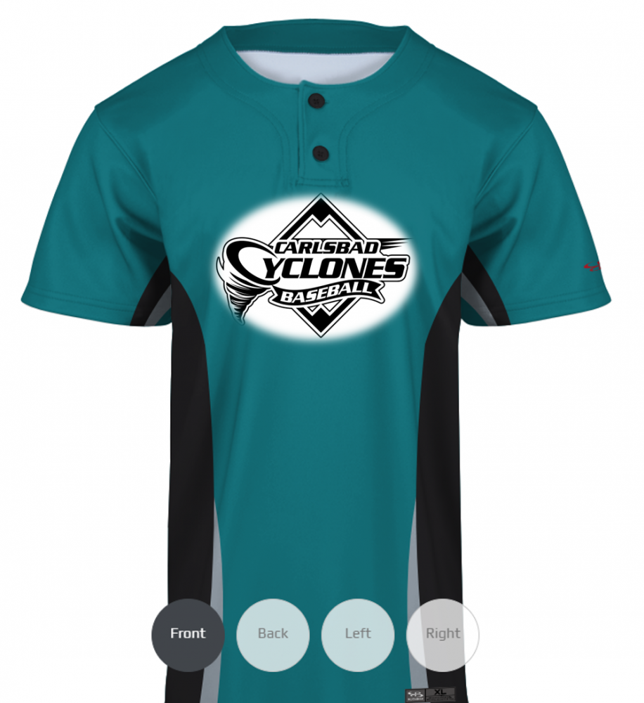 - The words “Carlsbad” and “baseball” don’t have to stand out as much as our team name “Cyclones”. I would like the “y” in “Cyclones” to maybe be an image of a cyclone funnel. This logo will be embroidered onto a black baseball cap. This logo will also be sublimation printed onto a teal 2-button baseball jersey. I’m open to all color suggestion.