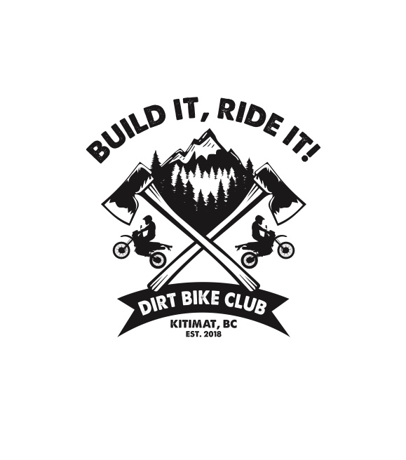 - CLooking for logo that has mountains and trees , dirtbike, axe and chain saw in an X , with Build it Ride It with an lightning bolt in the middle in the font style I submitted also dirtbike club and Kitimat BC in the logo