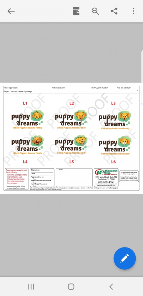 - Retail puppy store with supplies, grooming, training, sales. "Where Puppies Become Family" is the tagline and needs to be within the logo.
