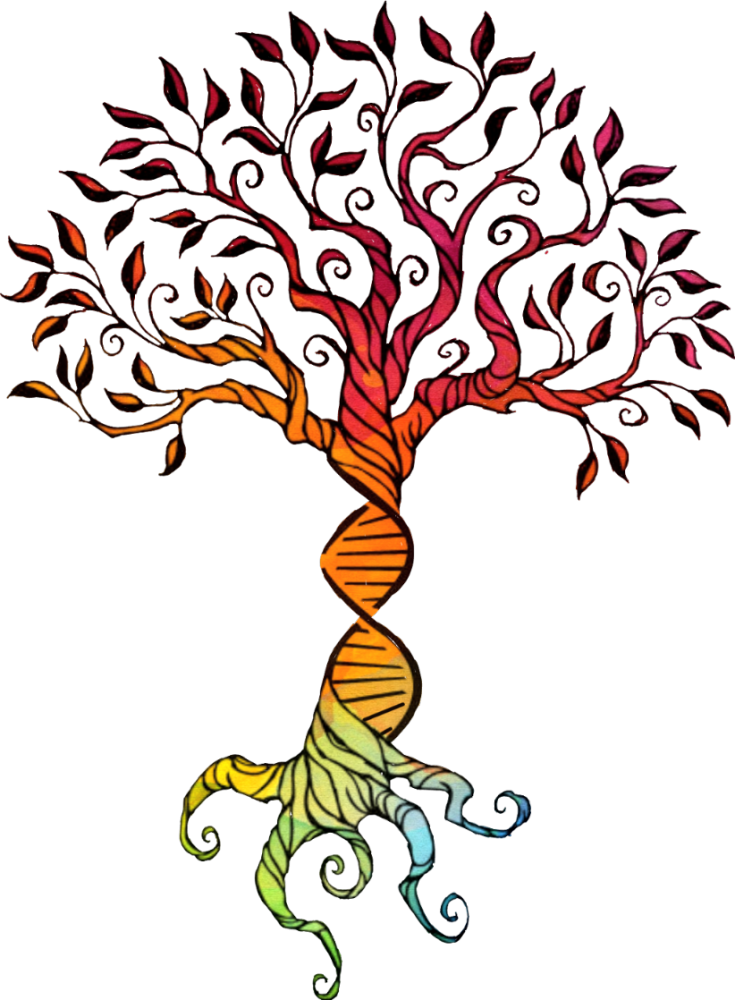 - I would like an image of tree (symbolising growth) with a dna strand in its trunk (symbolising evolve) within a circle that vaguely resembles the yin/yang symbol (symbolising balance). The words Resolve and Evolve outside the circle and I'm wanting the word Evolve to stand out more than the word Resolve if possible. Colour scheme to include purple hues, indigo and maybe greens. Thanks,
