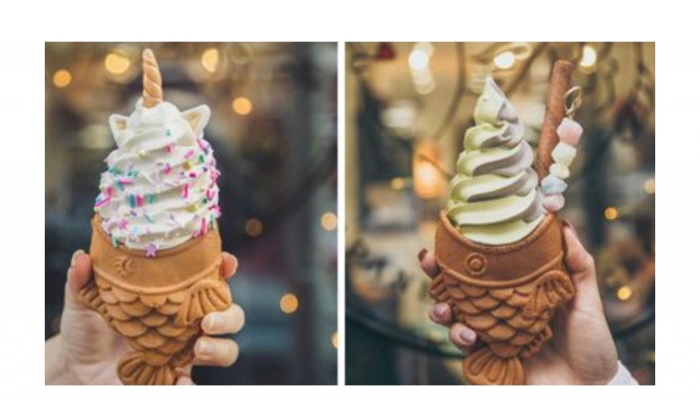 - Taiyaki soft yogurt ice cream, taiyaki is a Japanese fish shaped waffle.