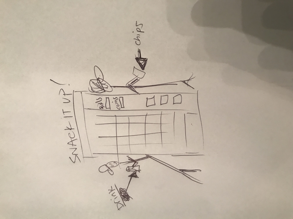 - WHAT WE HAD IN MIND IS 2 GUYS LEANING UP AGAINST A VENDING MACHINE ONE ON EACH SIDE. WITH THE COMPANY NAME ON THE VENDING MACHINE. WE WANT TO HAVE A COOL SLEEK DESIGN THAT ATTRACTS THE EYE AND IS FUN.BUT FEEL FREE TO SEND OVER ANY OTHER IDEAS!! WERE OPEN TO OTHER IDEAS. WE LIKE DESIGNS THAT LOOK SHARP AND EMPHASIZE THE NAME - SNACK IT UP!